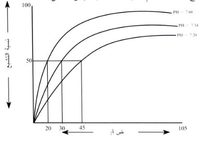 شكل 1 : منحنى انفكاك الأكسجين من الهيموجلوبين
