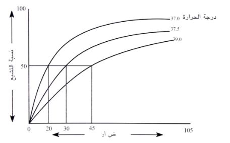 شكل 4 : علاقة درجة حرارة الجسم بتشبع الهيموجلوبين بالأكسجين