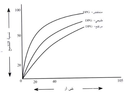 شكل5 : علاقة الجليسرات ثنائي الفوسفات بتشبع الهيموجلوبين بالأكسجين