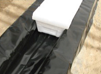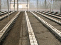 • تكون نسبة ميل القنوات 1:27 سم، ويتم إمداد انابيب التصريف وتوصيلات انابيب الري بالتنقيط كما يتم أيضا عمل فتحات في نهاية كل قناة من الداخل لتصريف المياه وإرجاعها مرة أخرى الى الخزان ومن ثم تفرش القنوات من الداخل ببلاستيك بولي ايثيلين أسود أو أي لون آخر مناسب لتسهيل عملية جريان المياه، بعدها تعبا القصاري بالبرلايت وتوضع على القنوات ممدودا عليها انابيب الري.