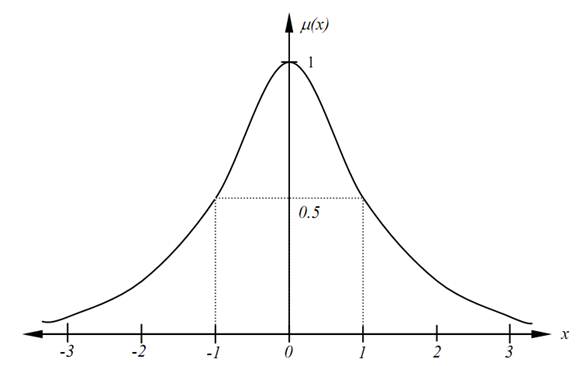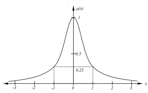 Fig. 1.4. Membership function of fuzzy set “real number near 0”