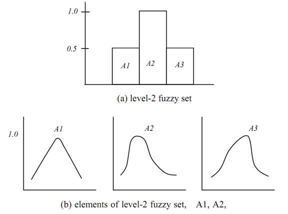 Definition (Level-k fuzzy set) The term “level-2 set” indicates fuzzy sets whose elements are fuzzy sets (Fig 1.7). The term “level-1 set” is applicable to fuzzy sets whose elements are no fuzzy sets ordinary
