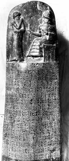 فترة في تاريخ المملكة البابلية القديمة . ومن دراسة آثار حمورابي المعاصرة يستدل على انه كان يكتسب الصفة الالهية فقد اطلق على نفسه اله الملوك (2). ويمكننا اعتبار شريعته من اعظم اعماله. فقد جمع حمورابي جزءا من شريعته من القوانين والتشريعات العراقية القديمة مثل قانون اورنامو مؤسس اسرة اور الثالثة، وقوانين لبت عشتار ملك ايسين. وجميع تلك القوانين كانت تحتوي على تشريعات كاملة (3) لتنظيم المجتمع وحمايته. ثم اضاف حمورابي على تلك القوانين الكثير من المواد الاخرى. وقد وجدت هذه التشريعات على لوح من حجر الديوريت الاسود (*) ، يبلغ ارتفاعه حوالي ثمانية اقدام ، ويعلو اللوح نقش يظهر فيه حمورابي الى اليسار مائلا امام اله الشمس" شمش " يتلقى منه شرائعه. وقد تكسر اللوح الى ثلاث قطع .