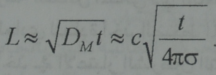 هذا ويخضع انتثار الحقل المغنطيسي لقوانين العمليات العشوائية الاعتيادية، والتي سيجري الحديث عنها فيما بعد . ان عمق التوغل خلال زمن t هو من مرتبة: