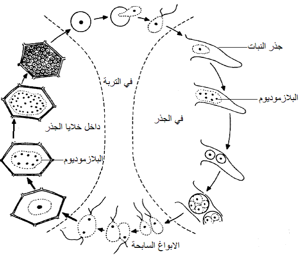 الشكل (2): دورة الحياة النموذجية لفطر بلازموديوفوري.