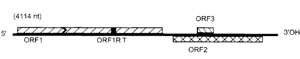 الشكل (2): التنظيم الجينومي لفايروس التقزم الأصفر للشوفان (OCSV) ذو الجينوم الرايبي المفرد الموجب وحيد القطعة، وتدل الصناديق على الهياكل التشفيرية المفتوحة.