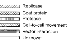 يضم الجينوم الفايروسي الجينات وهي المناطق التشفيرية المتمثلة بالتعاقبات النيوكليوتايدية المسئولة عن الإظهار الوراثي Expression للبروتينات اللازمة لإكمال دورة الإصابة الفايروسية وحركة الفايروس في النبات وارتباطه بالناقل، وتضم المناطق التشفيرية أيضا "تعاقبات السيطرة" Control sequences وهي التعاقبات التي تنظم عمل الجينوم، كما يضم الجينوم المناطق غير التشفيرية المسيطرة على تضاعف الفايروس وإظهار الجينوم. يمكن للتعاقبات النيوكليوتايدية الجينومية نظريا تشفير لغاية 12 متعدد الببتيد Polypeptide أو أكثر بقليل، وتشفر معظم الفايروسات الرايبية مفردة الخيط موجبة التوجه (+) ssRNA بين 4-7 أنواع من البروتينات.