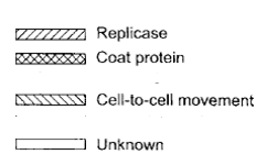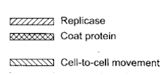 ويبين الشكل (9) التنظيم الجينومي لفايروس موزائيك الجت (AMV) والمكون جينومه من اربع قطع هي RNA1 و RNA2 و RNA3 و RNA4.