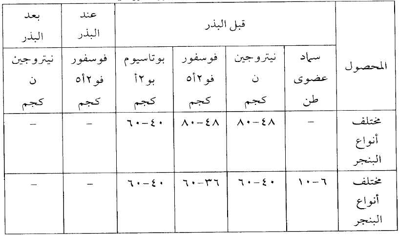 6-8 كيلو جرام نيتروجين. وأفضل الأسمدة هي: