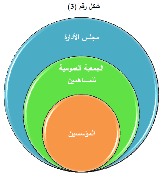 يتكون المساهمين في الشركات المساهمة العامة من ثلاث فئات أساسية هي المؤسسين والجمعية العمومية للمساهمين ومجلس إدارة الشركة كما هو موضح في الشكل رقم 3. وفي السياق التالي سنستعرض هذه الأنواع بشيء من التفصيل.