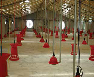 مثال: إذا كانت الحظيرة تحتوى على 1000 طائر فإن ذلك يعني توفير 25 معلفاً مستديراً أو 59 معلفاً طويلاً.