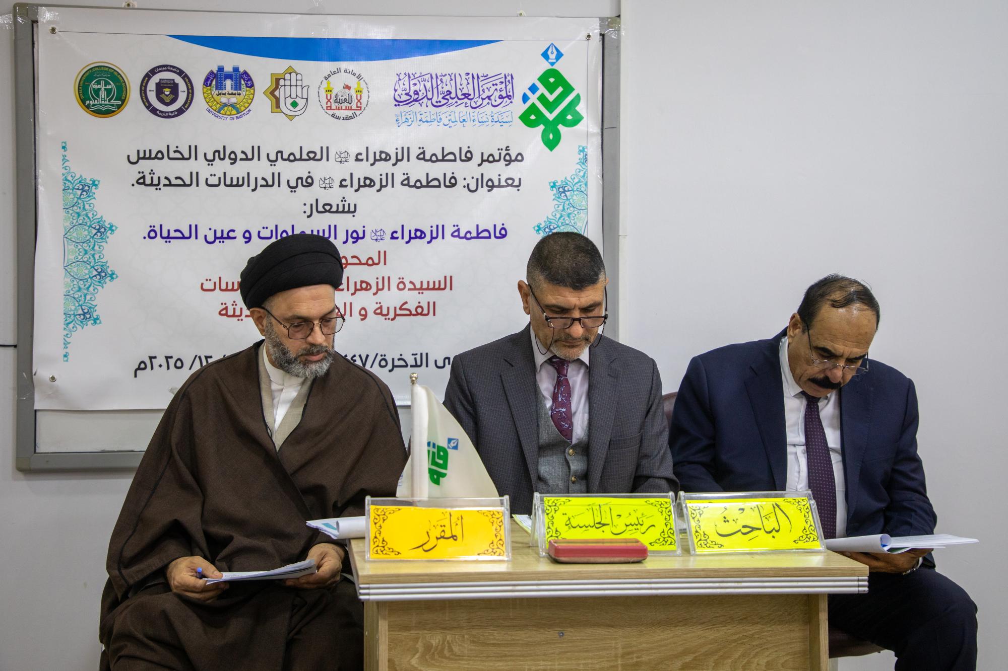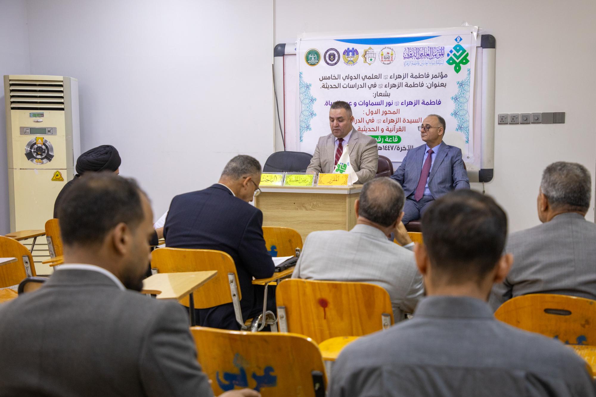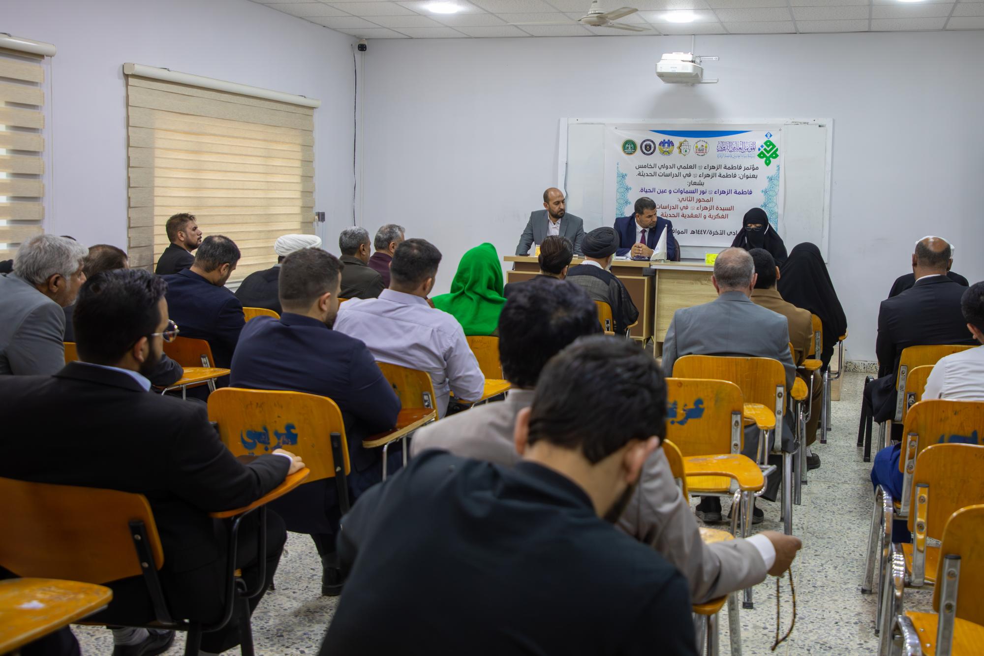 شهدت فعاليات المؤتمر العلمي الدولي الخامس عن السيدة الزهراء (عليها السلام) في جامعة بابل، عقد عدد من الجلسات البحثية بمحاور مختلفة. وأُقيم المؤتمر برعاية العتبتين المقدستين الحسينية والعباسية، ونظّمه قسمُ الشؤون الفكرية في مقام معجزة ردّ الشمس، بالتعاون مع مركز تراث الحلّة التابع لقسم شؤون المعارف الإسلامية والإنسانية في العتبة العبّاسية المقدّسة، وكلّية التربية الأساسية في جامعة بابل، وكلّية العلوم الإسلامية في جامعة ديالى، تحت شعار (فاطمة الزهراء نور السماوات وعين الحياة). وقال رئيس محور جلسات اللغة الإنكليزية الدكتور رياض العميدي: إنّ "المؤتمر تضمّن خمسة محاور تناولت شخصية السيدة فاطمة الزهراء (عليها السلام)، على وَفقِ مختلف الجوانب والدراسات، إذ جاء المحور الأوّل بجلستين تناولتا الدراسات القرآنية والحديثة". وأضاف أنّ "المحور الثاني تمركز حول الدراسات الفكرية والعقدية الحديثة، بينما تطرّق الثالث إلى الدراسات اللغوية والأدبية إضافة إلى بحوث تناولت شخصيتها (عليها السلام) في الدراسات الإنكليزية، أمّا المحور الرابع فقد تناول الدراسات التاريخية والاستشراقية".