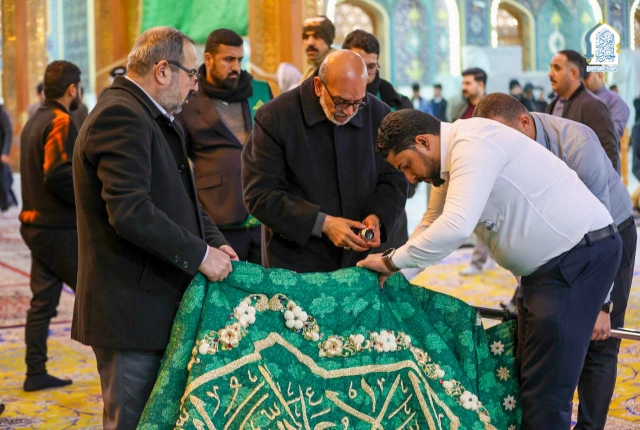استبدال ستائر مدخل حرم الشريف ابتهاجًا بذكرى ولادة الإمام محمد الجواد "عليه السلام"