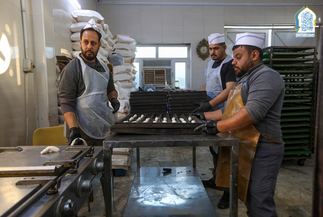 بتوجيه من رئيس اللجنة المركزية لإدارة الزيارات المليونية والمناسبات الدينية في العتبة الكاظمية المقدسة أمينها العام الدكتور حيدر عبد الأمير مهدي، وضمن خطة استنفار الجهود لخدمة الزائرين الكرام، سخّرت أفران العتبة الكاظمية المقدسة خطوطها الإنتاجية كافة منذ البدء بالخطة الخدمية الخاصة بموسم زيارة ذكرى شهادة الإمام العابد موسى بن جعفر الكاظم "عليه السلام"، لدعم وجبات الطعام بمادة الصمون التي توزّع إلى الزائرين في مضيف الجوادين، فضلاً عن رفد بعض المواكب الحسينية في مدينة الكاظمية، والسعي في زيادة كميات الإنتاج لتغطية ما تحتاجه جموع الزائرين الكرام.