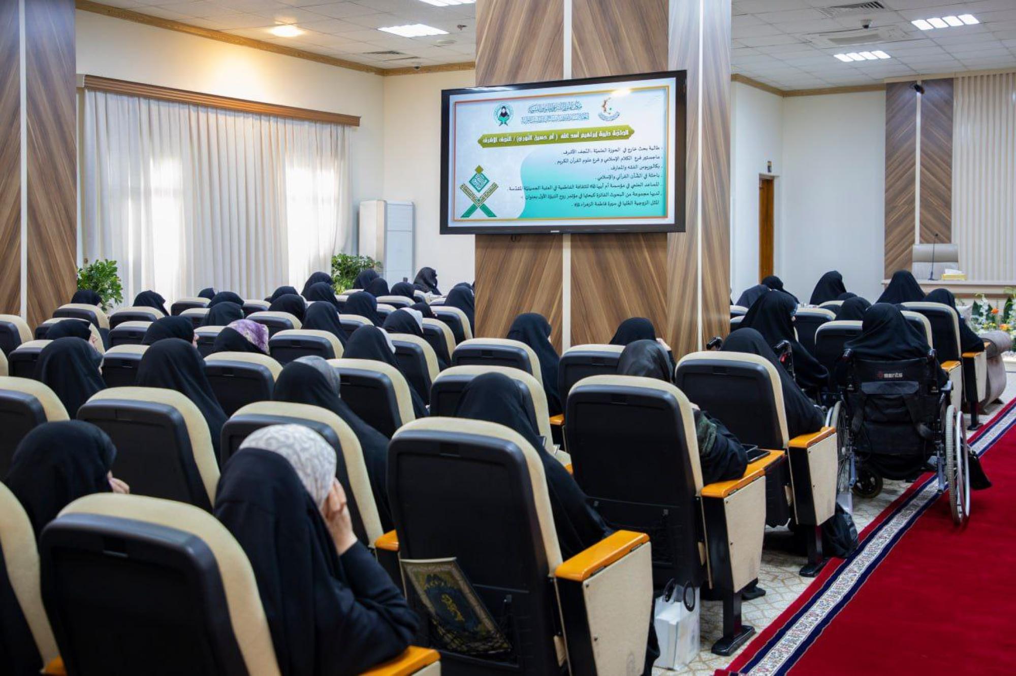 ناقشت الباحثة طيبة إبراهيم أسد الله، بحثًا بعنوان (المبعث النبويّ والبُعد الفكريّ في بناء نساء تقلّدن سيماء الأنبياء.. السيدة فاطمة الزهراء "عليها السلام" أنموذجاً). جاء ذلك خلال فعّاليات مُلتقى غيث السماء القرآنيّ النسويّ السنويّ الثاني، الذي تنظّمه شعبةُ فاطمة بنت أسد(عليها السلام) للدراسات القرآنية التابعة لمكتب المتولّي الشرعيّ للشؤون النسوية في العتبة المقدّسة، تحت شعار (بين الوحي ووفاء خديجة بداية الرحمة للعالمين)، تزامنًا مع ذكرى المبعث النبويّ الشريف، واحتفاءً باليوم الوطنيّ للقرآن الكريم. وقالت الباحثة في ملخّص بحثها، إن "البحث يُعنى بأهمّية الغاية من الخَلق والوجود، وكيفية وصول المرأة إلى تلك الغاية، بما يضمن خصوصيّتها، وقد أتبعت في هذا البحث المنهج الوصفيّ وقمت بإحصاء ما تمكّنت من الآيات والروايات المرتبطة بذلك، وتحليلها واستنطاقها للوصول إلى كيفيّة تزكية وتنمية العبودية والإخلاص عند السيدة فاطمة الزهراء(عليها السلام)". وأضافت أن "البحث يتضمّن مقدّمةً، ومبحثَينِ، وخاتمة، إضافة إلى الفهارس، وجاء المبحث الأوّل بعنوان (المبعث النبويّ تخطيط وتنفيذ إلهي للبناء الفكري والعقدي للإنسان)، وتضمّن ثلاثة مطالب هي: الحكمة الإلهية من البعثة النبوية، وبناء الأساس الفكريّ والعقديّ لتنفيذ الأهداف في الجانب العملي والسلوكي، وتقديم النبيّ المصطفى(صلّى الله عليه وآله) أسوةً للاتّباع والاقتداء للوصول إلى الكمال والهدى". وتابعت أن "المبحث الثاني حمل عنوان (البعثة النبوية تحقّق بناء المرأة الكاملة، فاطمة الزهراء -عليها السلام- أنموذجًا)، وجاء بثلاثة مطالب أيضاً هي: التربية النبوية لابنته السيدة الزهراء(عليها السلام) في بيوت أذِنَ الله (عزّ وجلّ) أن تُرفع ويُذكر فيها اسمه، والسير التكاملي لفاطمة الزهراء بالاتّباع والاقتداء بسيماء الأنبياء مع الحفاظ على الخصوصيّة النسوية، والسيّدة فاطمة الزهراء(عليها السلام) معيار للفضل والاقتداء في كلّ عملٍ ورؤى".