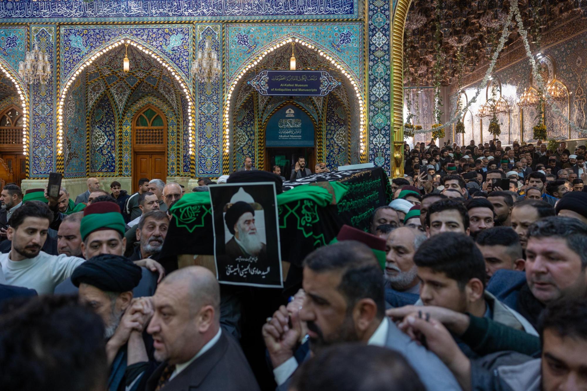 العتبتان المقدستان تشهدان مراسم تشييع جثمان آية الله السيد هادي السيستاني