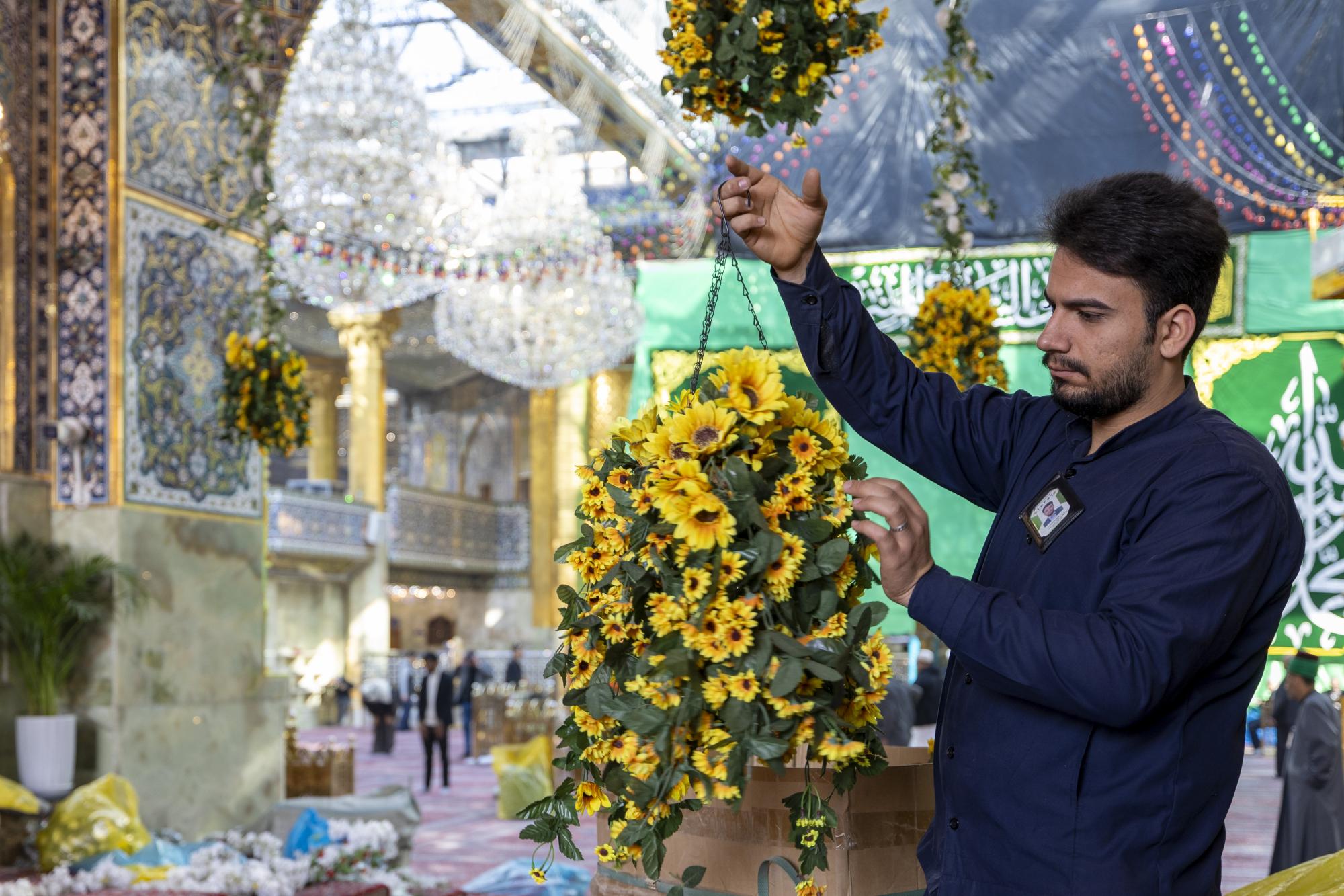 العتبة العباسية المقدسة تنشر لافتات الفرح تزامنًا مع ذكرى الولادات الشعبانية