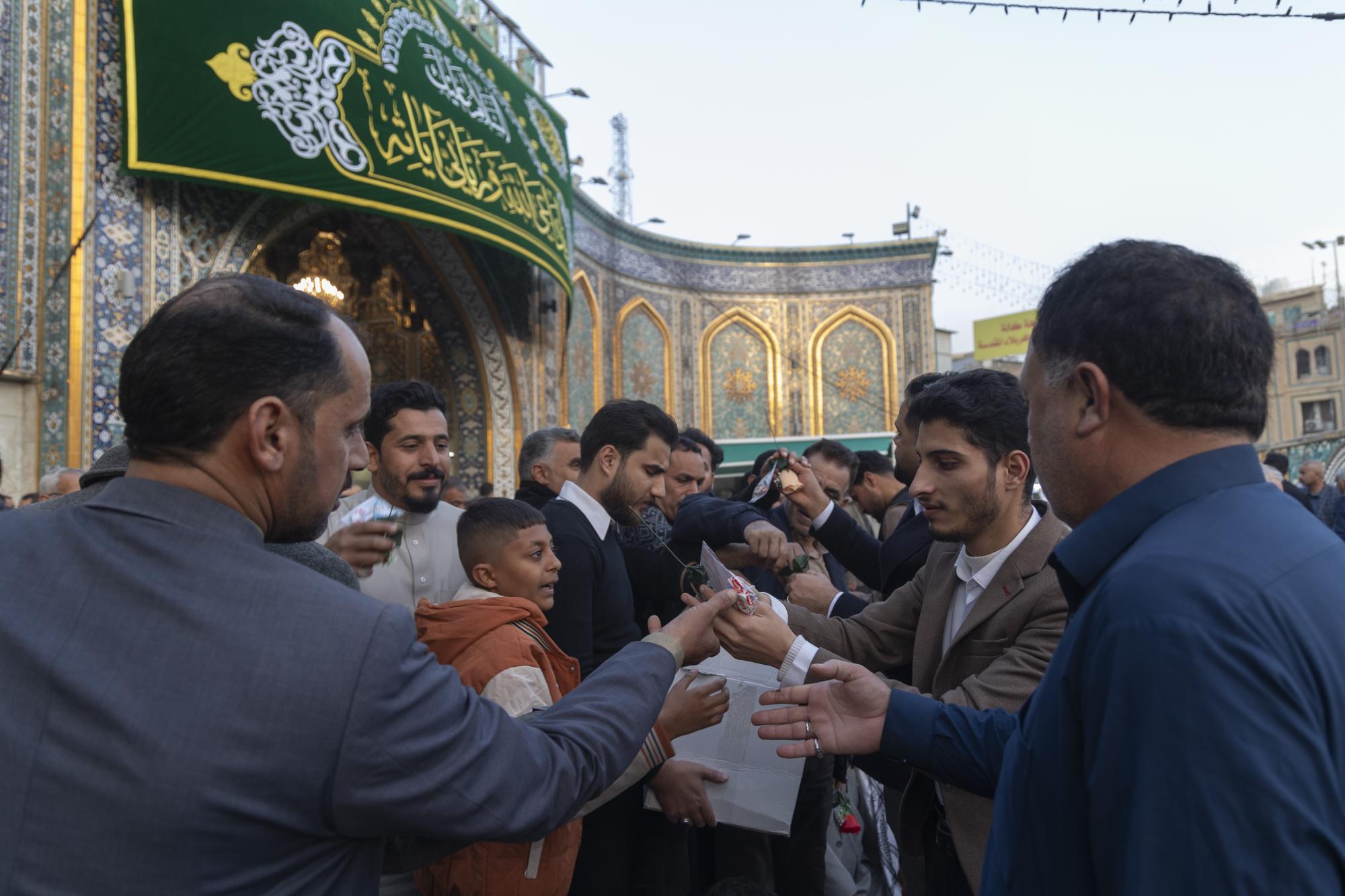 استقبلت ملاكات قسم الشؤون الفكرية والثقافية في العتبة العباسية المقدسة الزائرين، بالورد وقطع الحلوى ابتهاجًا بذكرى ولادة الإمام المهدي (عجّل الله فرجه). وقال معاون مدير مركز ملتقى القمر الثقافي التابع للقسم السيد علي عبد الوهاب: إنّ ملاكات المركز استقبلت الزائرين بالورد والحلوى، إضافةً إلى توزيع بطاقات تحمل دعاء الفرج لصاحب العصر والزمان (عجّل الله فرجه). وأضاف أنّ التوزيع شمل 1192 وردة، مساويةً لعدد أعوام عمر الإمام (عجّل الله فرجه)؛ بهدف إضفاء البهجة والسرور بين الزائرين.