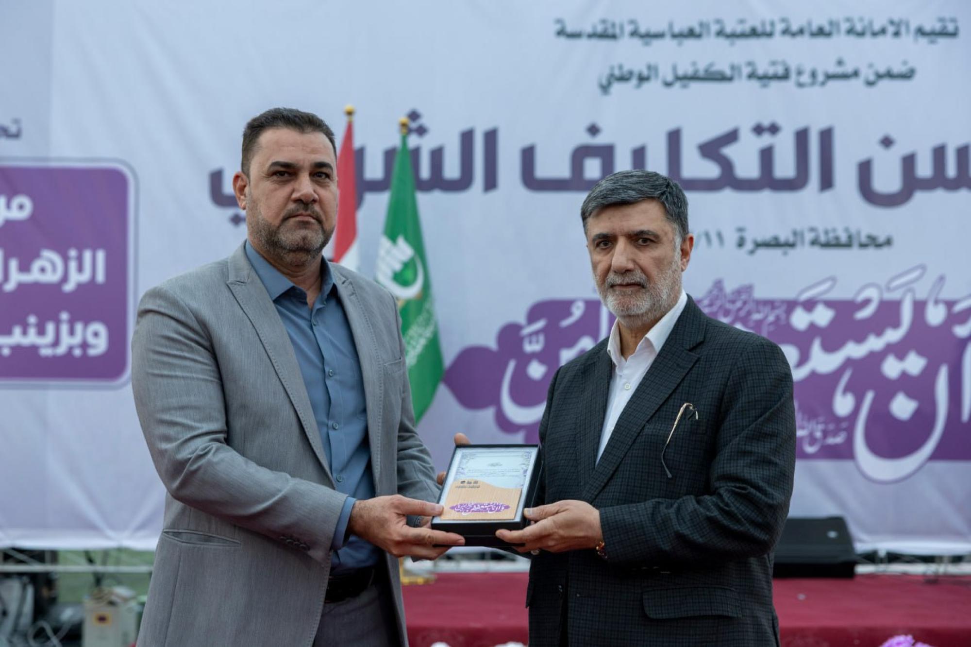 أقامت العتبة العباسية المقدسة مهرجان سنّ التكليف الشرعي لـ 1000 فتاة من تلميذات مدارس قضاء القرنة بمحافظة البصرة. ونظمت المهرجان شعبة العلاقات الجامعية والمدرسية التابعة لقسم العلاقات العامة في العتبة المقدسة بالتعاون مع المديرية العامّة للتربية في محافظة البصرة ضمن مشروع فتية الكفيل الوطني وتحت شعار: (من نور الزهراء حجابي وبزينب اقتدائي). وقال عضو مجلس إدارة العتبة المقدسة الدكتور أفضل الشامي: إنّ المهرجان تضمن الاحتفاء بـ 1000 فتاة من تلميذات مدارس قضاء القرنة، وذلك في إطار حرص العتبة العباسية المقدسة على صون هوية المرأة المسلمة الملتزمة، سواء عَبرَ مهرجانات سنّ التكليف أو حفلات التخرج التي تليق ببناتنا. وأكّد أنّ هذا النشاط سيستمر ويتوسع ليشمل محافظات أخرى خلال المرحلة المقبلة، ضمن رؤية تسعى إلى ترسيخ القيم الدينية والهوية الثقافية لدى الفتيات في مختلف مناطق العراق.