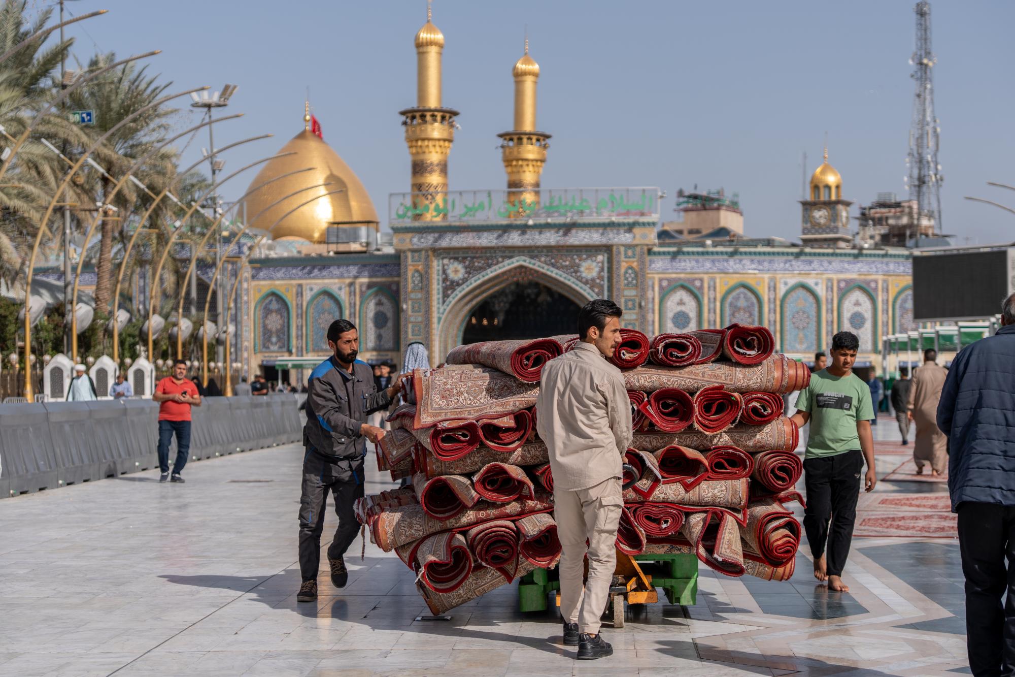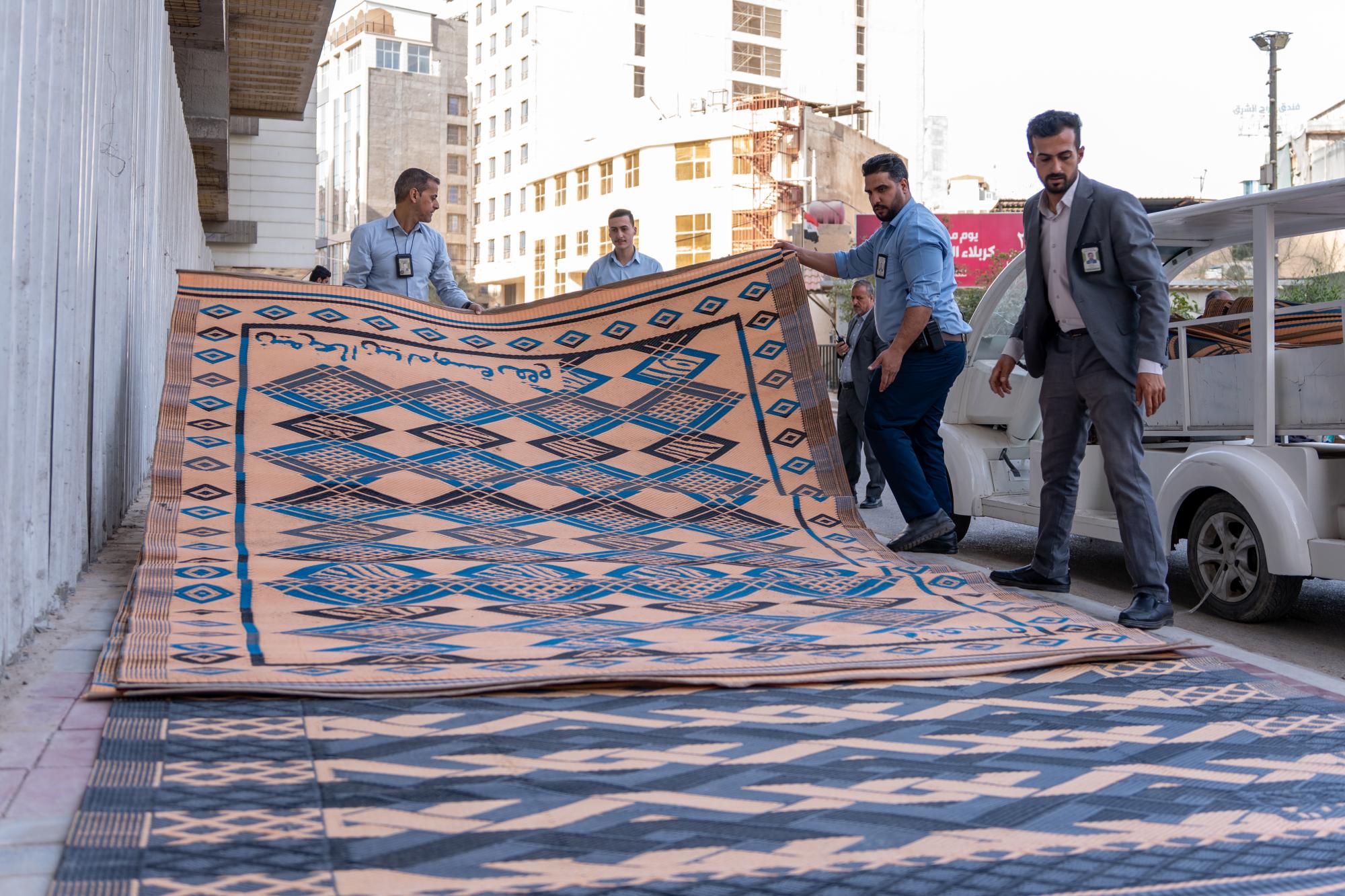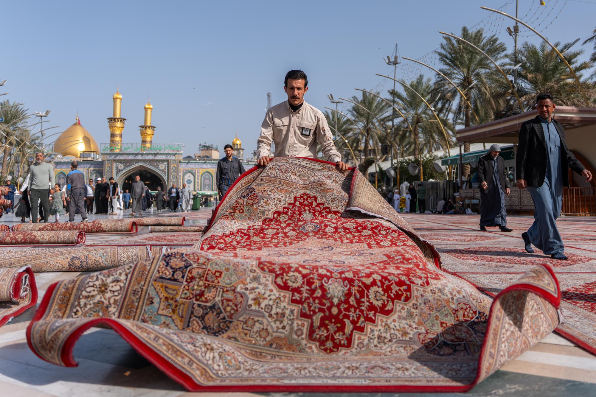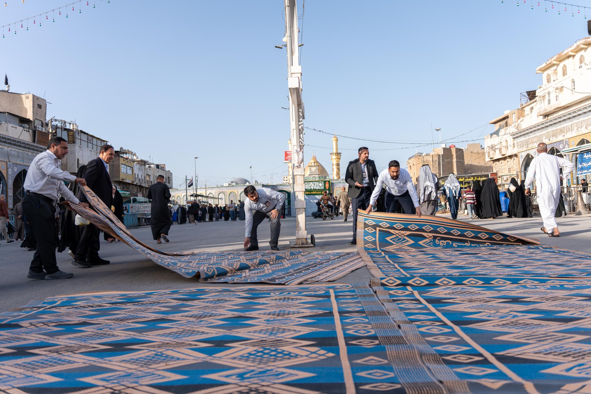 تعمل ملاكات قسم بين الحرمين الشريفين في العتبة العباسية المقدسة، على تهيئة الساحة الوسطية بين مرقدي الإمام الحسين وأخيه أبي الفضل العباس (عليهما السلام)، ضمن نشاطها المتواصل لخدمة الزائرين. وقال المعاون الإداري لرئيس القسم، السيد أوس طاهر مهدي: إنّ ملاكات القسم تواصل تقديم خدماتها لزائري المرقدين الطاهرين، في أيام شهر رمضان المبارك. وأضاف أنّ "من ضمن الأعمال اليومية التي تقع على عاتق القسم فرش أكثر من 1500 سجادة في منطقة بين الحرمين الشريفين، ومحاور الدخول إليها، منها محاور باب القبلة وباب بغداد وباب العلقمي".