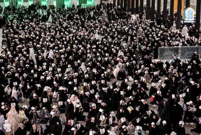 ثم ابتهلت الجموع المؤمنة التي غصت بها هذه الرحاب الطاهرة إلى المولى العلي القدير أن يتقبل منها خالص الدعاء والأعمال في هذه الليلة وسائر الليالي والأيام وتعجيل الفرج بظهور صاحب الأمر الإمام الحجة المنتظر "عجل الله فرجه الشريف"، وأن يحيي قلوبهم بالمحبة والأخوة والوئام، وأن يحل السلام والأمن والأمان على بلاد المسلمين في مشارق الأرض ومغاربها.