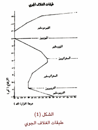 كان الناس في الماضي يعتقدون أن درجة الحرارة تزداد بالارتفاع حيث أننا كلما ارتفعنا إلى أعلى كلما اقتربنا من الشمس التي تعد المصدر الأساسي لتسخين الغلاف الجوي، إلا أن الأمر غير ذلك تماماً فالغلاف الجوي لا يسخن من أشعة الشمس مباشرة، بل إن تلك الأشعة تصل سطح الأرض الذي يمتص الجزء الأكبر منها فيسخن ويشخن طبقة الهواء القريبة منه. ولهذا فإن درجة الحرارة تتناقص بالارتفاع في طبقة الهواء القريبة من سطح الأرض التي تعرف بطبقة التروبوسفير Troposphere. تأمل الشكل (1) الذي يبين طبيعة التغير في درجة الحرارة كلما ارتفعنا إلى أعلى. لاحظ أن درجة الحرارة في الطبقة السفلى التي تعرف بالتروبوسفير تتناقص بالارتفاع. ويقدر معدل التناقص بدرجة مئوية واحدة كلما ارتفعنا 15 متراً. أما في الطبقة الثانية وهي الطبقة التي تلي طبقة التروبوسفير وتعرف بالستراتوسفير Stratosphere، فإن درجة الحرارة تزداد بالارتفاع، إذ أن مصدر تسخين تلك الطبقة هي أشعة الشمس فوق البنفسجية التي تمتصها طبقة الأوزون التي توجد على ارتفاع 35 - 50 كيلومتراً. لاحظ أن درجة الحرارة على ارتفاع 50 كم تساوي معدل درجة الحرارة على سطح الأرض تقريبا.