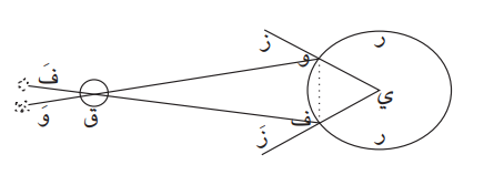 وإذا كانت السدام متماثلة سعة وظهر بعضها أصغر من بعض فالصغير منها أبعد من الكبير على نسبة مربع البعد.