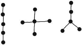 How many different trees can be made from a specific number of points? The problem of counting trees was tackled by the 19th-century English mathematician Arthur Cayley. For example, there are exactly three different tree types with five points: