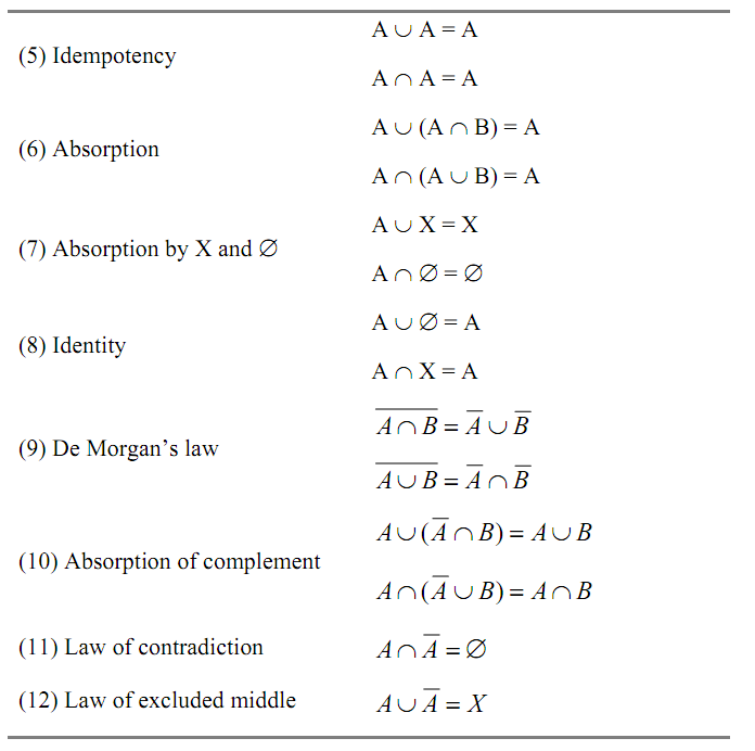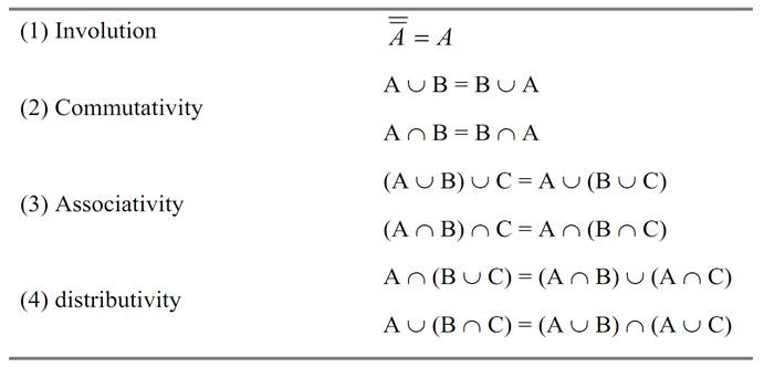 Let us look over the operational characteristics of union, intersection, and complement set [Table 1.1]. Commutativity of union and intersection is