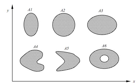 Fig. 1.1. Convex sets A1, A2, A3 and non-convex sets A4, A5, A6 in |R2