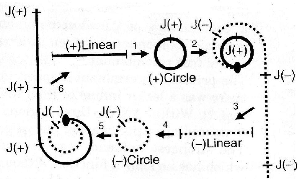 يطلق على الألية مصطلح Symmetrical rolling circule transcription model والتي تتم بالخطوات التالية (1) تتحول القطعة الرايبية الخيطية الموجبة Linear (+) إلى الشكل الحلقي الموجب Circle (+) بواسطة إنزيم الربط النباتي RNA ligase لتتكون الحلقة الموجبة (+)J (2) يبدأ إنزيم التضاعف RdRp الذي يزوده الفايروس المساعد على القطعة الحلقية لاستنساخ الشكل الخيطي السالب (-)J والمبين بالخط المنقط والمستمر بالتكون (3) ينشطر الخيط السالب في مناطق الانشطار المبينة على الخيط ليعطي قطعة تماثل في حجمها الخيط الأبوي تسمى Oligomeric sTRSV (-) RNA، ثم تنشطر بعدها قطعة أخرى، وهكذا (4) تتحول كل قطعة إلى الشكل الحلقي بواسطة إنزيم الربط (5) يبدأ إنزيم التضاعف RdRp ثانية باستنساخ خيط موجب جديد مستمر بالتكون من الشكل الحلقي السالب (6) ينشطر الخيط الموجب في مناطق الانشطار المبينة على الخيط ليعطي قطعة تماثل في حجمها الخيط الأبوي ثم تنشطر بعدها قطعة أخرى، وهكذا يتضاعف التابع.
